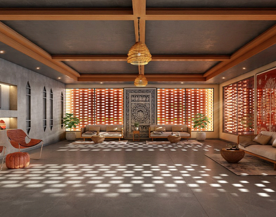 A central courtyard designed with Odisha’s cultural aesthetics, blending heritage with modern architecture to create a unique sense of belonging.